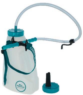 • Bottiglia/drencher per vitelli per la prima somministrazione di colostro • Somministrazione possibile mediante attacco per tettarella o sonda drenching flessibile • drencher sviluppato con agricoltori e veterinari • erogatore speciale per un drenching più semplice e sicuro • somministrazione del mangime semplice, sicura e rilassata per l’animale e per l’uomo • tubo flessibile trasparente per il controllo del flusso • Valvola per un flusso di latte ottimale • Materiale: Plastica 14761: Flexi Tuber con cinghia per la testa