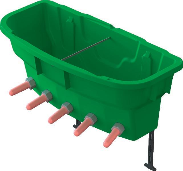 • per consentire di poppare a 5 vitelli contemporaneamente • facilita l‘osservazione degli animali durante l‘assunzione di latte • con angoli arrotondati, quindi facile da pulire • da appendere alle pareti della stalla, a rastrelliere, recinzioni, ecc. • semplice fissaggio dell‘abbeveratoio mediante fase in gomma elastica • accatastabile • facile da trasportare • perfetto per la capanna per vitelli grande (14440, 14520, 14540) e stalla con recinzione modulare (14486, 14487, 14488, 14489) • per alimenti • resistente ai prodotti chimici, resistente agli acidi