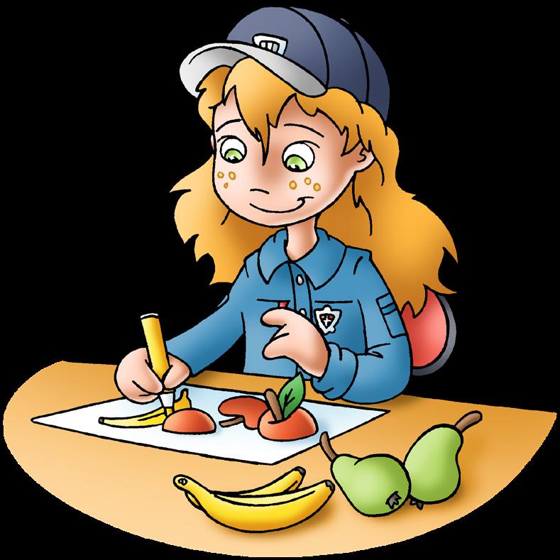 på hovedet. Hun syntes, at Sigurd var lidt tosset. Men selvfølgelig hoppede hun med på ideen, og snart sad de og tegnede på livet løs. For alle tuscherne og blyanterne i den store kasse i kredshuset skulle afprøves.