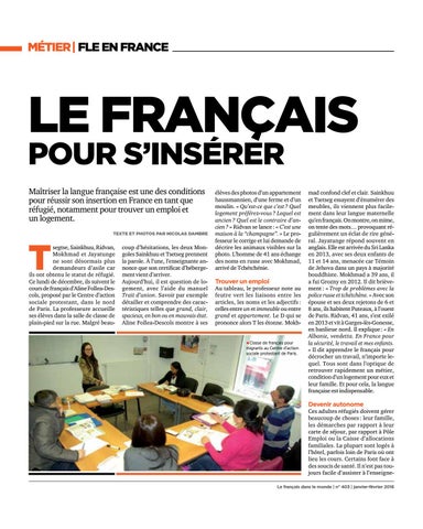 le fraNçais fraNçais le pours’iNsérer s’iNsérer pour Maîtriser la langue française est une des conditions pour réussir son insertion en France en tant que réfugié, notamment pour trouver un emploi et un logement.
