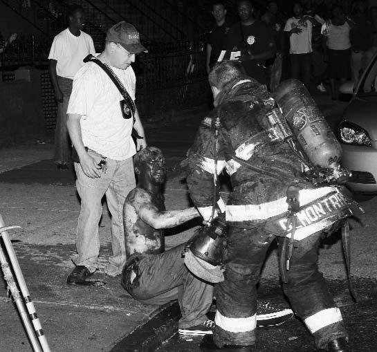 (Above and right) Brooklyn Box 22-0963, 175 Putnam Avenue, August 30, 2010, the incident forwhich FFPeterG. Demontreux, Ladder132, was awarded the James Gordon Bennett Medal and New York State Honorary Fire Chiefs Association Medal, and FFCharles J. Dodenhoff, Rescue 2, was awarded the Brooklyn Citizens Medal/FFLouis Valentino Award.