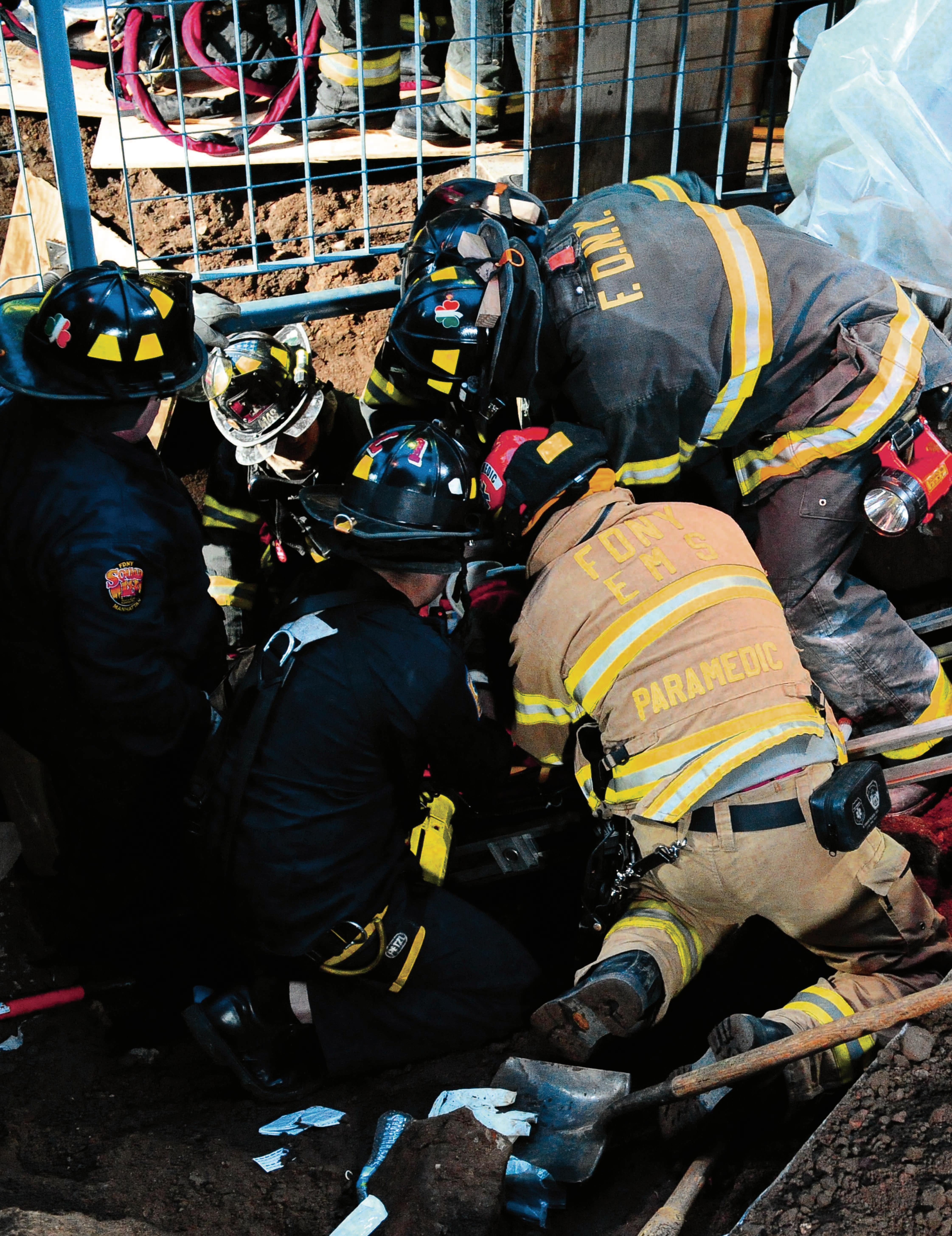 Brooklyn Box 0255, January 21, 2015. Fire and EMS members operate at a trench rescue
