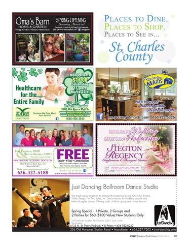 4135 N. St. Peters Parkway • St Peters • 636.922.0222 236 Old Meramec Station Road • Manchester • 636.227.7202 • just-dancing.com Inspired Food Culture