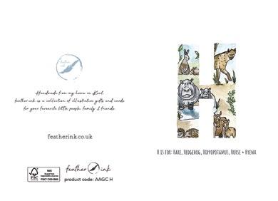 featherink.co.uk Product Catalogue 2024 4 About me Price list Greetings Cards Gift Wrap The Animal alphabet collective Notelets & Postcards Larger Prints Animal Prints A4 Terms & Conditions Our Policies Contact 2-3 5 6-25 26-27 28-33 34-35 36-39 40-41 42 43 44 Contents pages