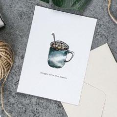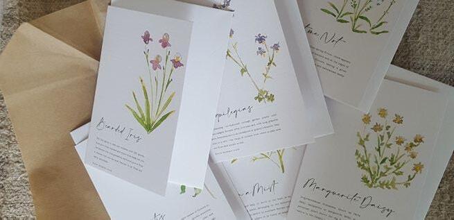All card prints are printed onto FSC-certified board and packaged in a fair-trade organic cotton drawstring bag. Any plastic found in deliveries to me (such as bubble wrap) is reused where possible and I reuse my boxes where I can too. When using cotton, I strive to ensure all cotton used is organic or fairtrade. As an individual and business (and as a supplier to The National Trust,) my carbon footprint is a very important part of my brand ethos