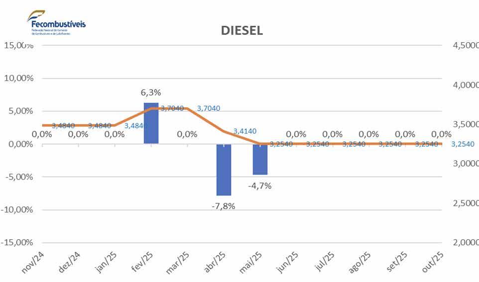 Obs: preços com base nas Tabelas Petrobras (refinarias) de 06/05/2025 para Óleo Diesel e 21/10/2025 para Gasolina - ICMS Base -Convênio ICMS 127/2024 (Gasolina) e Convênio ICMS 126/2024 (Diesel)