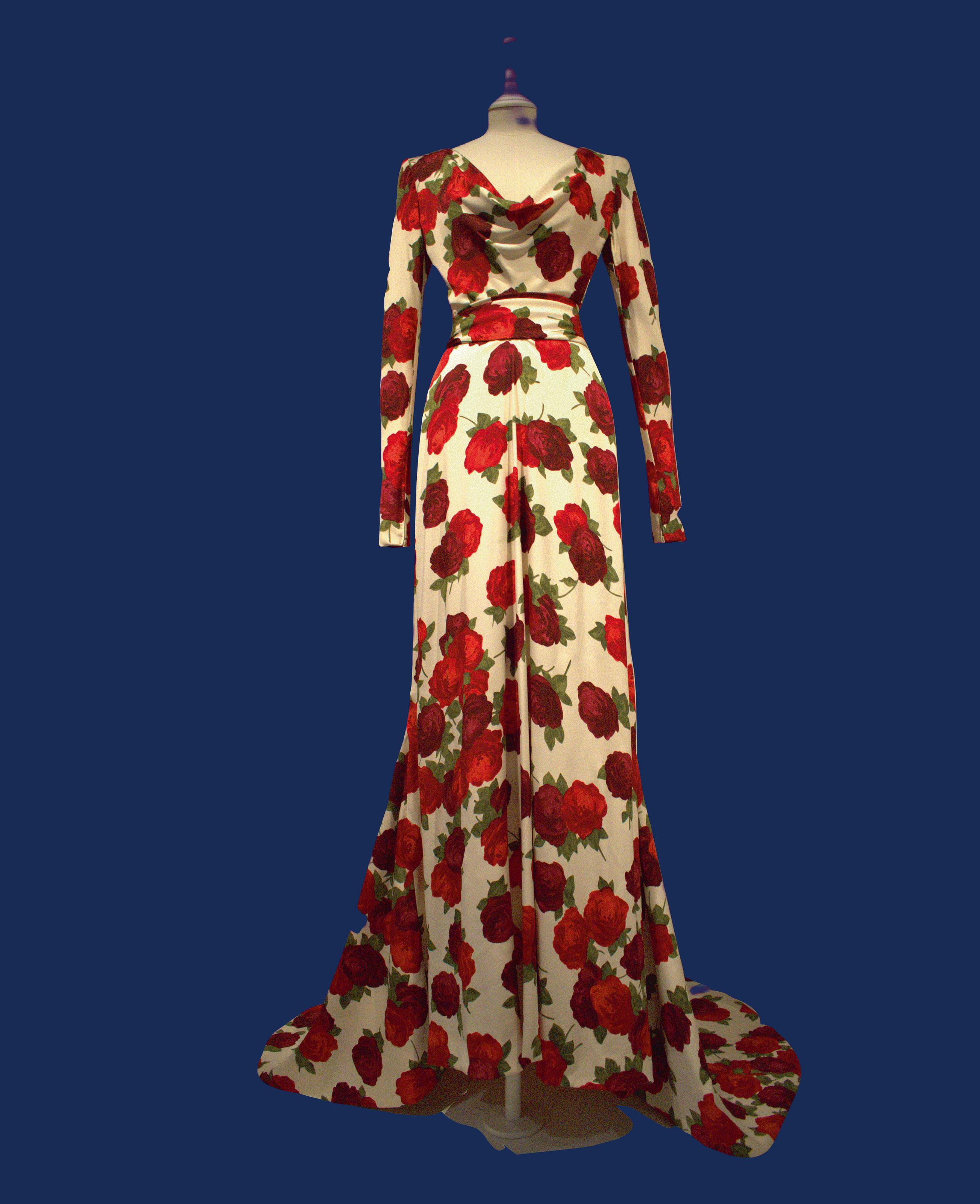 A red gown with rich floral motifs seems to embody passion and intensity. It is a symbol of strength and romance, showcasing fashion’s ability to convey deep emotions.