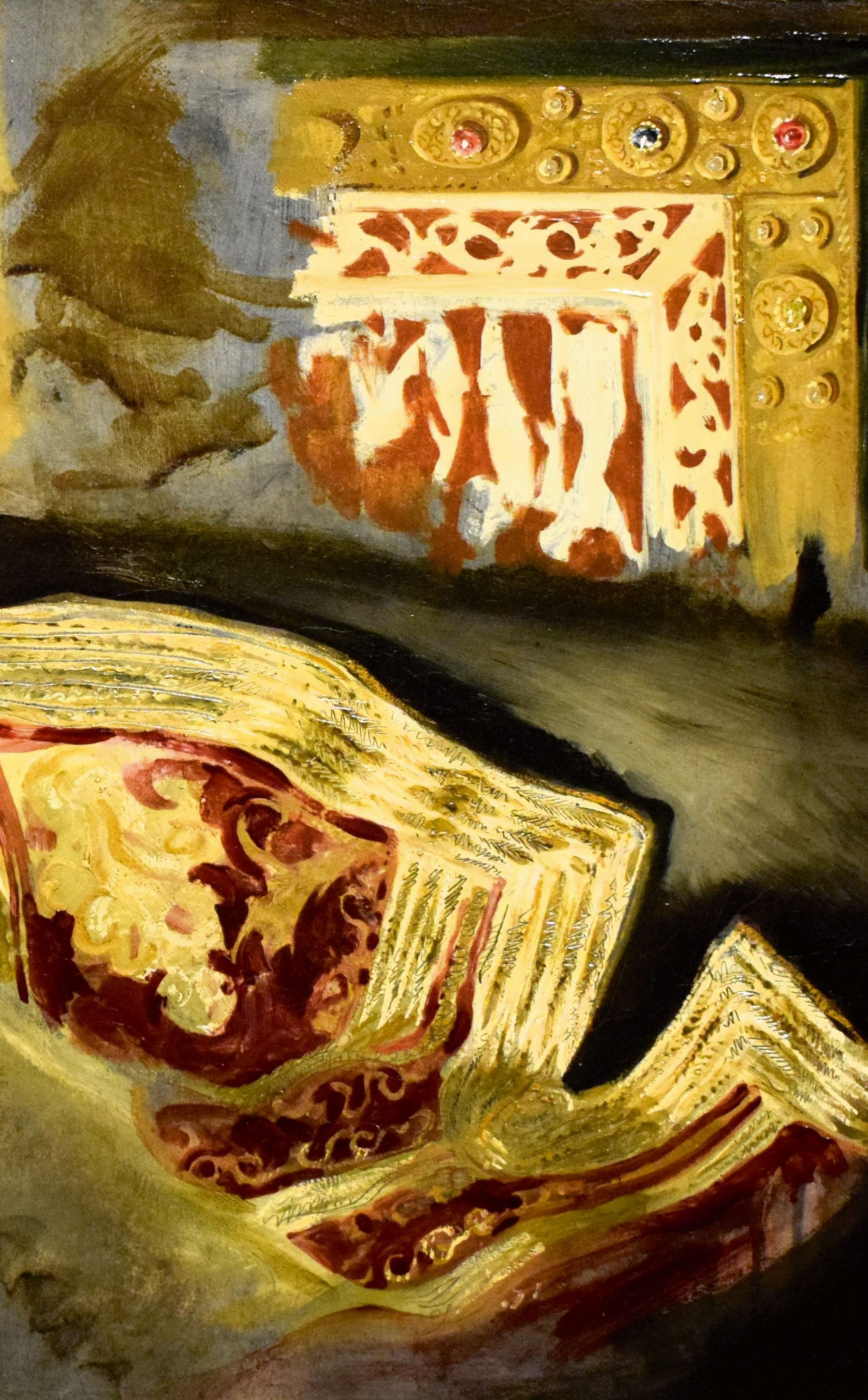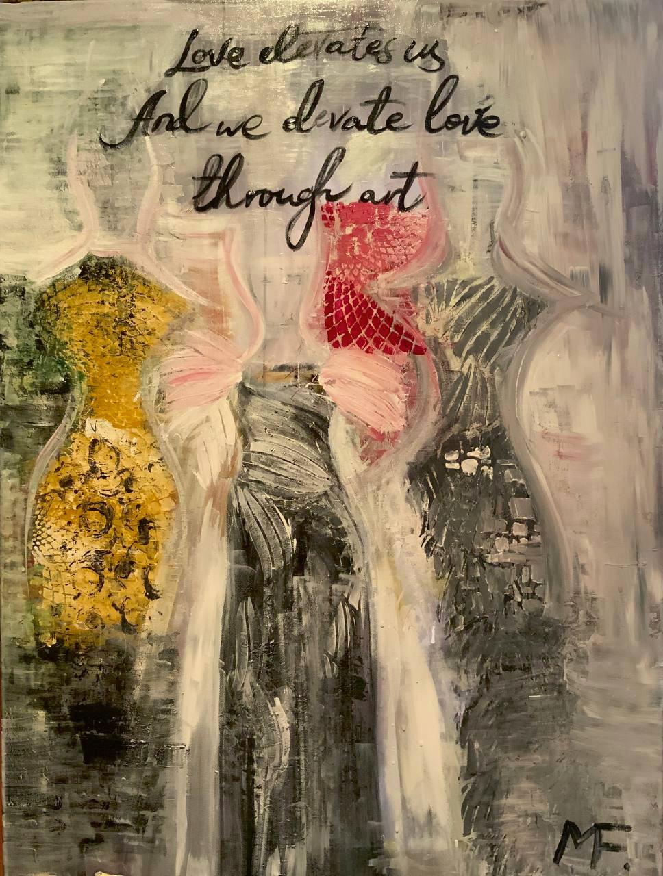 When I paint, I feel the weight of Parisian architecture—the neoclassical columns, the intricate ironwork of Haussmannian balconies, the labyrinth of Montmartre’s streets. These elements seep into my work, becoming part of the layered story I tell. In this series, the lines of couture blur into the bones of the city. Fashion is architecture for the body, and architecture is couture for the streets. The play of light and shadow, of aged textures and golden embellishments, mirrors the essence of a Parisian silhouette—structured yet fluid, classic yet avant-garde.