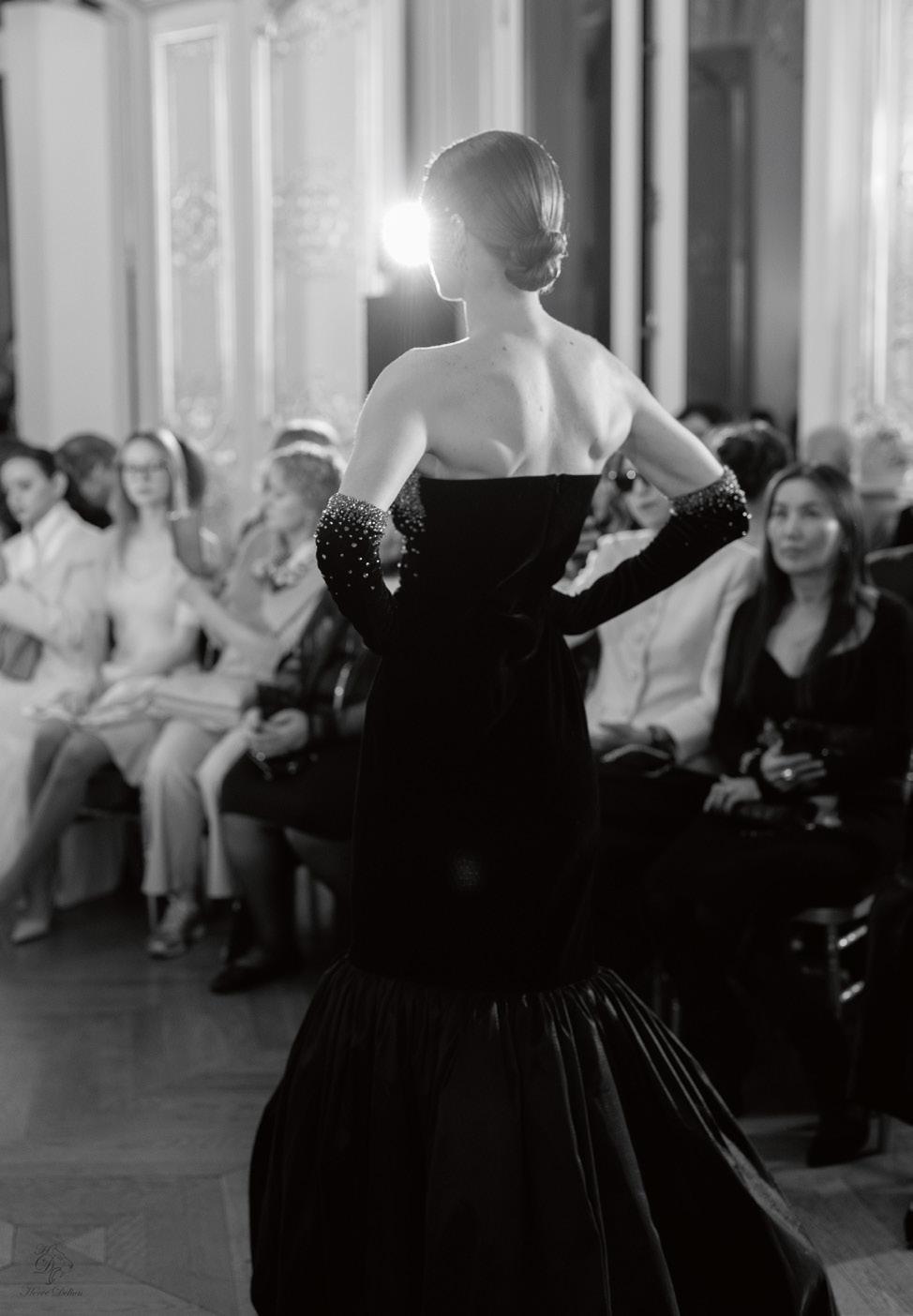 the designer’s vision, evolving from sketches into a flawless garment. Every detail, from the drape to the silhouette, was meticulously refined. The garment was then fitted on a mannequin, step by step transforming into a creation worthy of the runway.