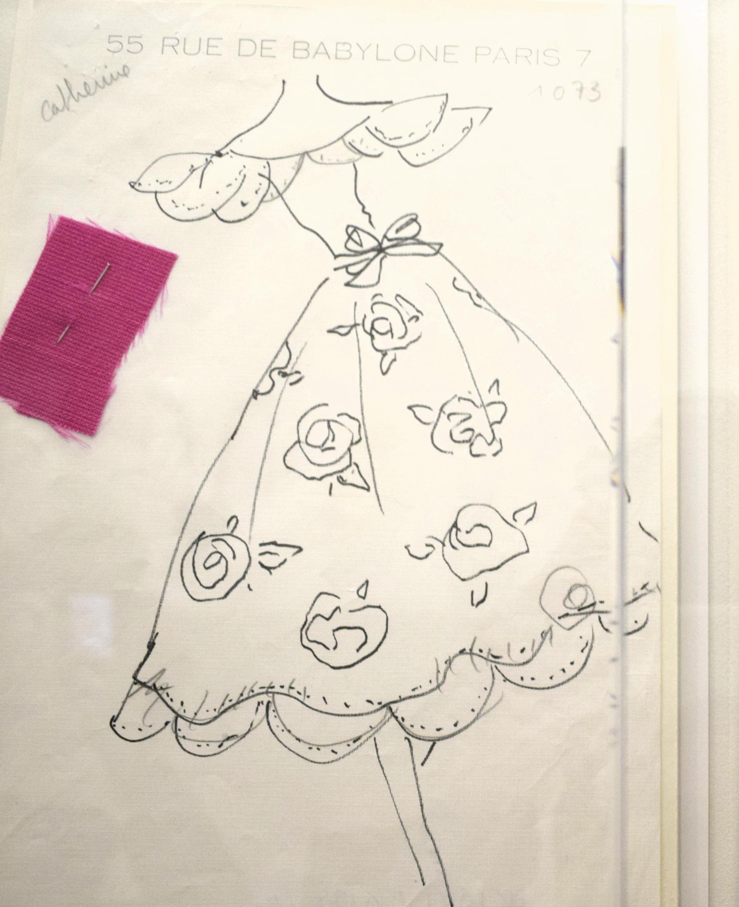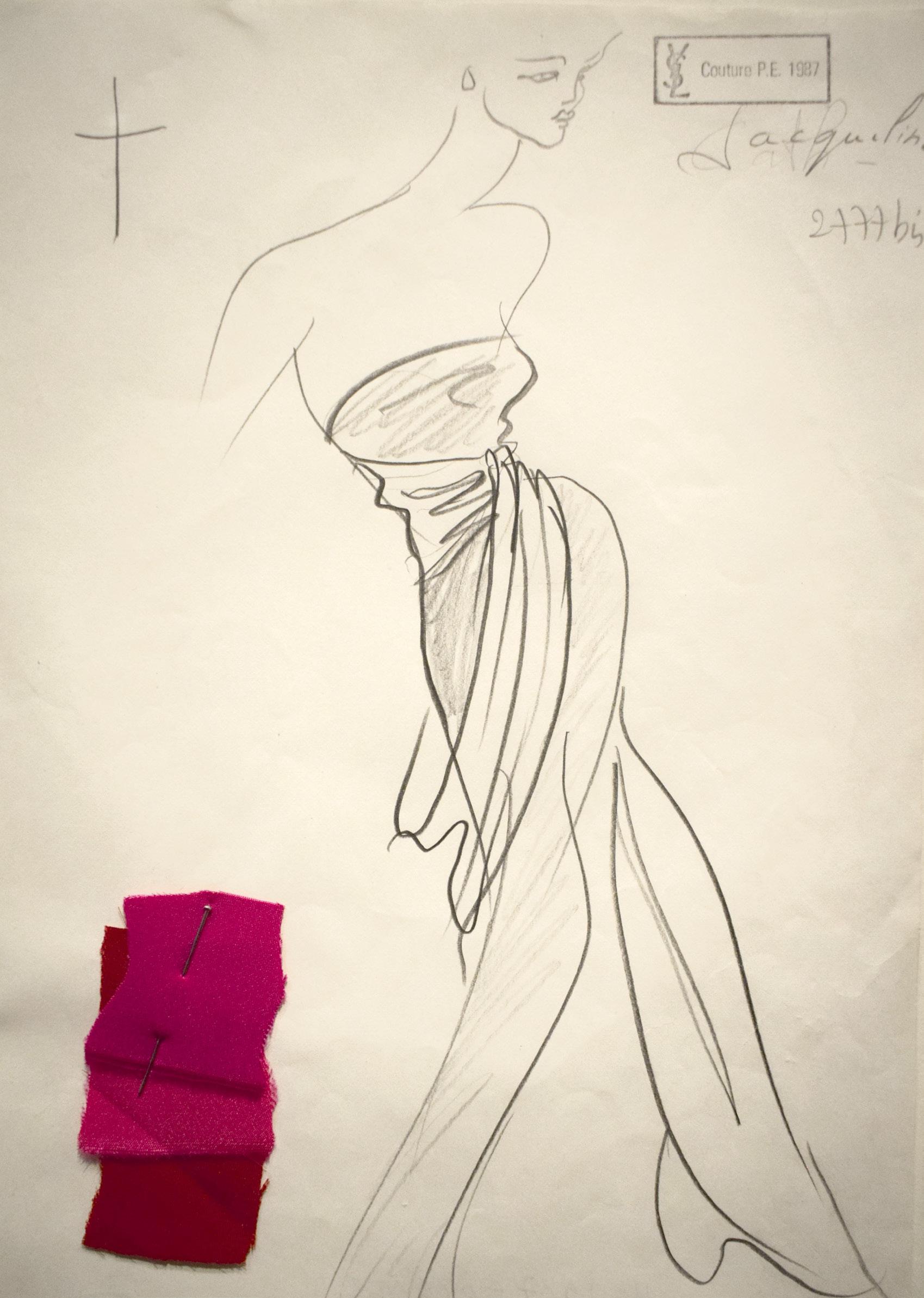 Alongside the sketches are fabric samples carefully chosen by Saint Laurent him -