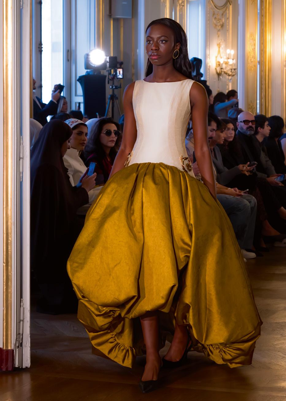 • DANA ALMULLA (Qatar) opened with “Voice of Change,” a collection that felt like an echo of history reclaiming itself—a metamorphosis of silk, armor, and revolution.