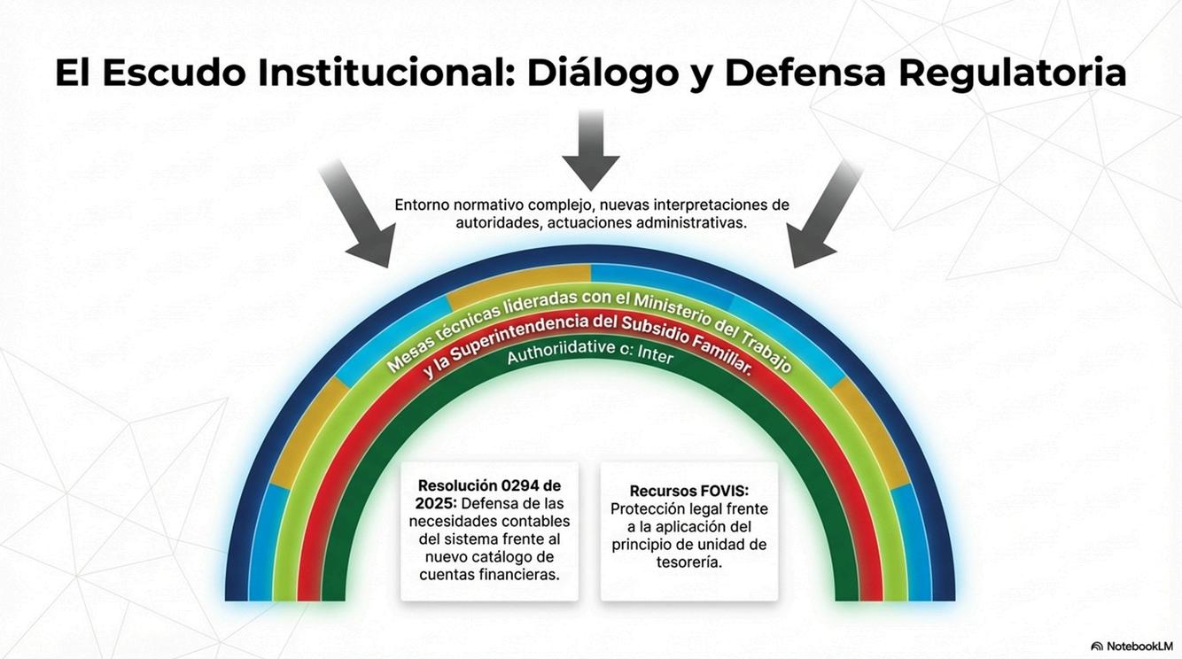 De igual manera, la Federación realizó seguimiento a la discusión jurídica relacionada con el manejo de los recursos del Fondo de Vivienda de Interés Social FOVIS, particularmente frente a la aplicación del principiodeunidaddetesorería.