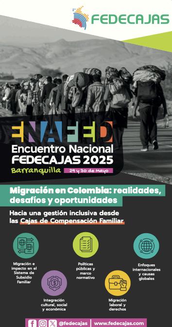 Se llevó a cabo en la ciudad de Barranquilla, Atlántico, los días 29 y 30 de mayo de 2025, en la Caja de Compensación Familiar Cajacopi, Unidad Prado. Este evento académico constituyó un espacio para analizar la migración en Colombia desde una perspectiva global, nacional y local, examinando sus causas, impactos y políticas, así como el papel de las Cajas de Compensación Familiar en el desarrollo de programas y servicios orientados al bienestar de la población.