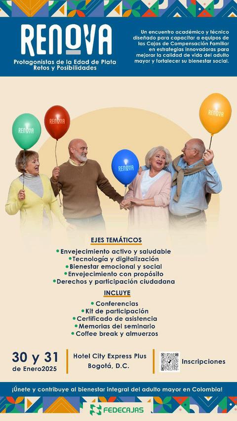 Se desarrolló en la ciudad de Bogotá D.C., los días 30 y 31 de enero de 2025, cuya temática estuvo enfocada en sensibilizar ycapacitaralosfuncionariosde las Cajas de Compensación Familiarsobrelaimportanciade brindar atención integral al adulto mayor, para ello se abordaron asuntos como envejecimiento activo y saludable, bienestar emocional y social, tecnología, derechos, participación ciudadana y articulación con el Gobierno Nacional.