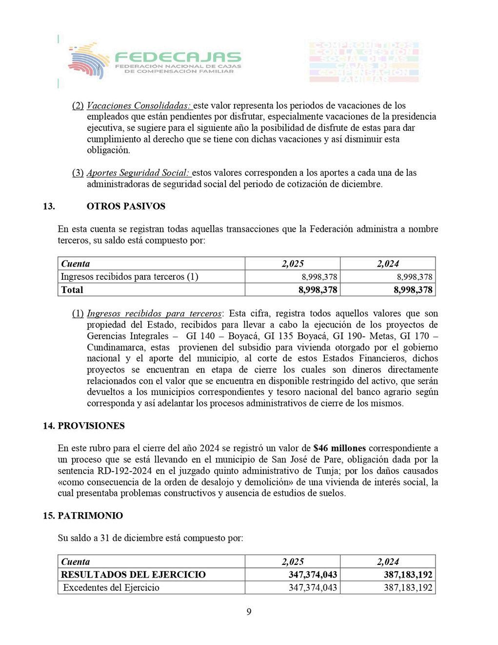 Agradezco de manera especial a las Cajas afiliadas, a la Junta Directivayatodoslosaliadosque,consuconfianzaytrabajoconjunto, hacen posible que FEDECAJAS continúe representando y fortaleciendo alsector.Sucompromisoesfundamentalparaseguiravanzandoenla construccióndeunsistemasólido,modernoyenfocadoenelbienestar deloscolombianos.