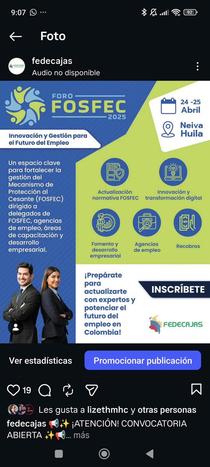 Se desarrolló en la ciudad de Neiva, Huila, los días 24 y 25 de abril de2025 lC d C i E Cl bL sLagosde Comfa o para el fortalec pensación Familia al Cesante (FOSFEC vés de la actuali digital y la optimiz