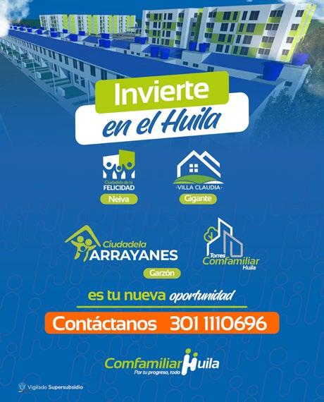 En este contexto, Comfamiliar Huila impulsa proyectos de vivienda VIS y VIP en municipios como Neiva, Garzón y Gigante, promoviendo el desarrollo urbano y ampliando las oportunidades de acceso a vivienda en zonas con proyección de valorización.