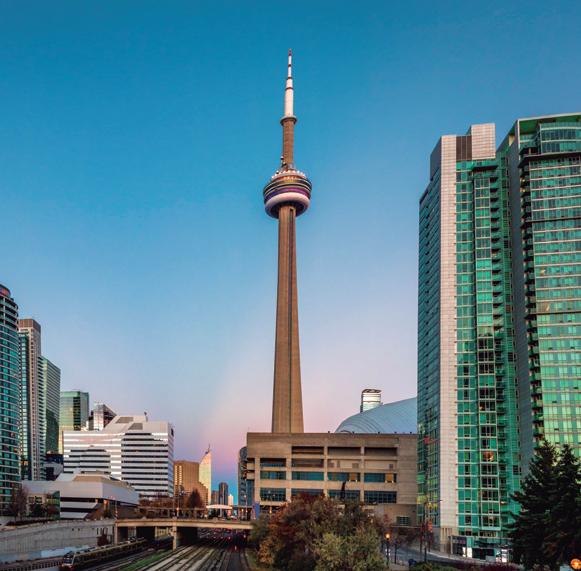 La Torre CN es la torre de radiodifusión más alta de América, con 553,3 metros, una de las más altas del mundo. CN son las siglas de Canadian National, la compañía ferroviaria que estaba detrás de la construcción del edificio. En 1995, se incluyó en la lista de las Siete Maravillas del Mundo, compilada por la Sociedad Estadounidense de Ingenieros Civiles. Cuenta con un restaurante 360º, ubicado a una altura de 351 metros.