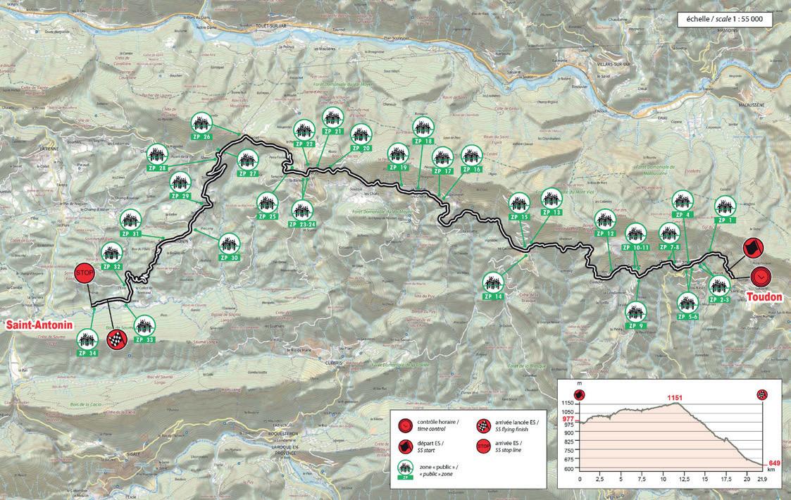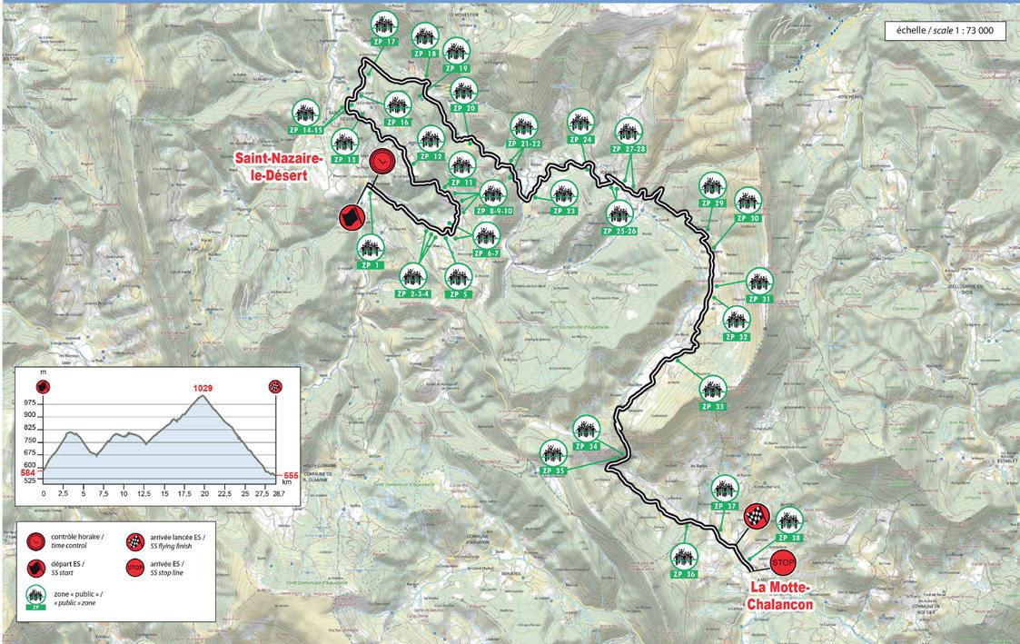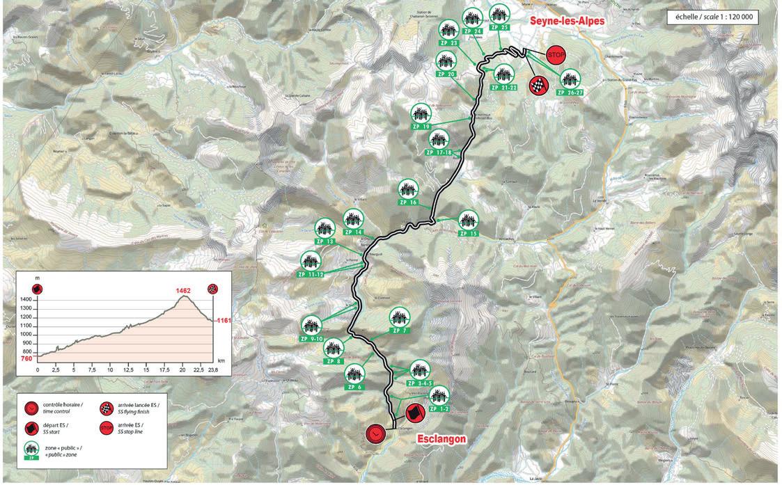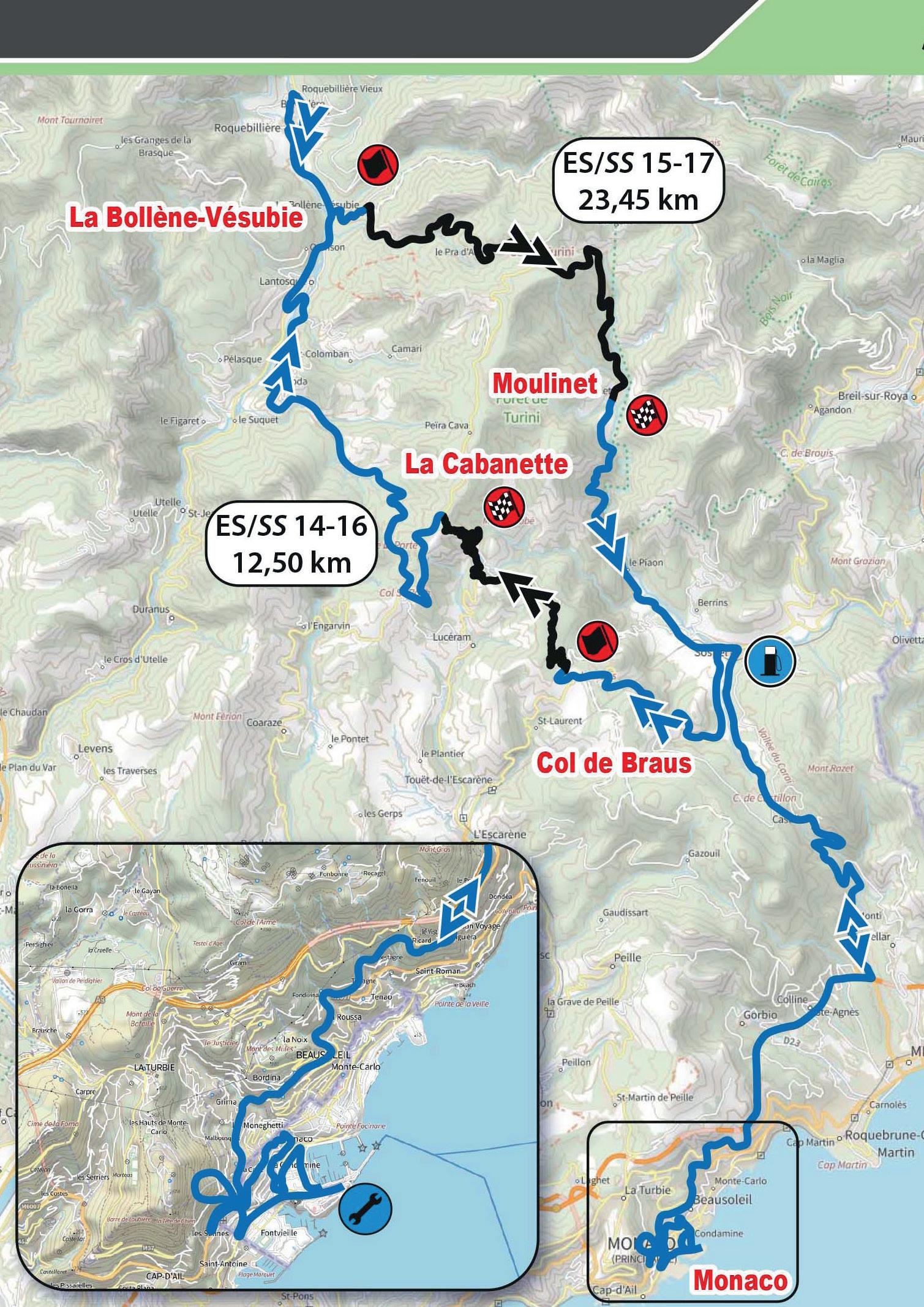It has been 20 years since this event was last held, since the 74th edition of the Monte Carlo Rally in 2006. The start is uphill with a series of hairpins, followed by a very technical section on a poorly maintained road, mostly exposed on the northern slope towards the Cols de l'Ablé (1149m) and Col de l'Orme (1005m). The climb to La Cabanette is a series of 15 hairpins, letting no respite for the crews on a south-facing road until they reach the finish...