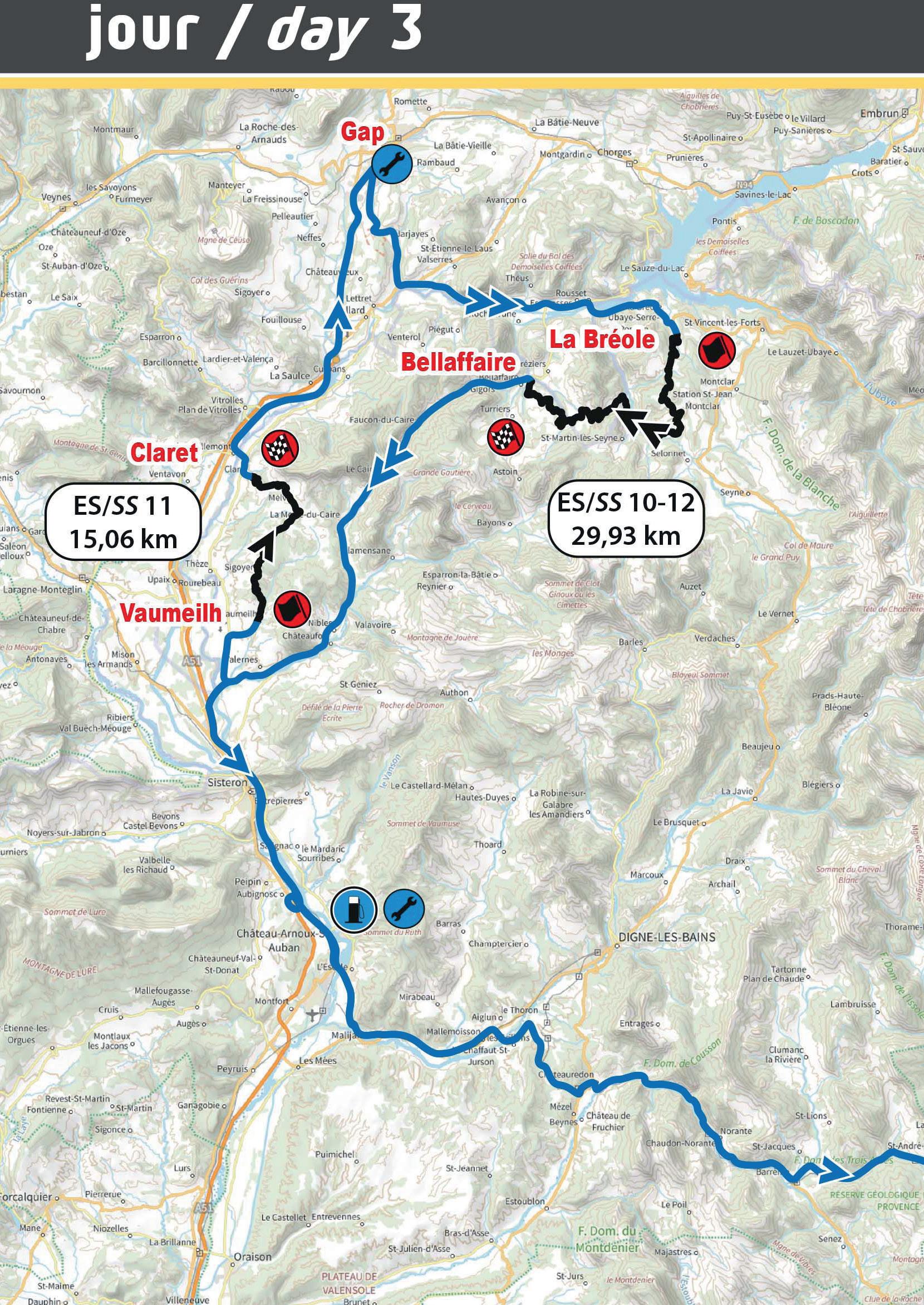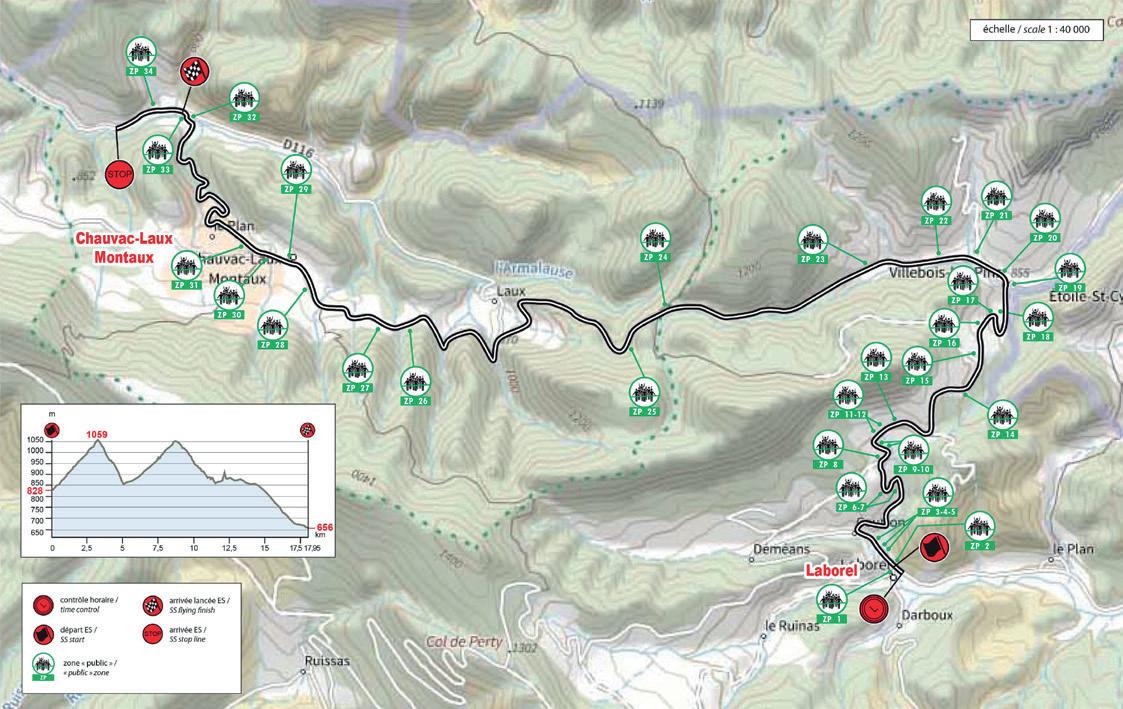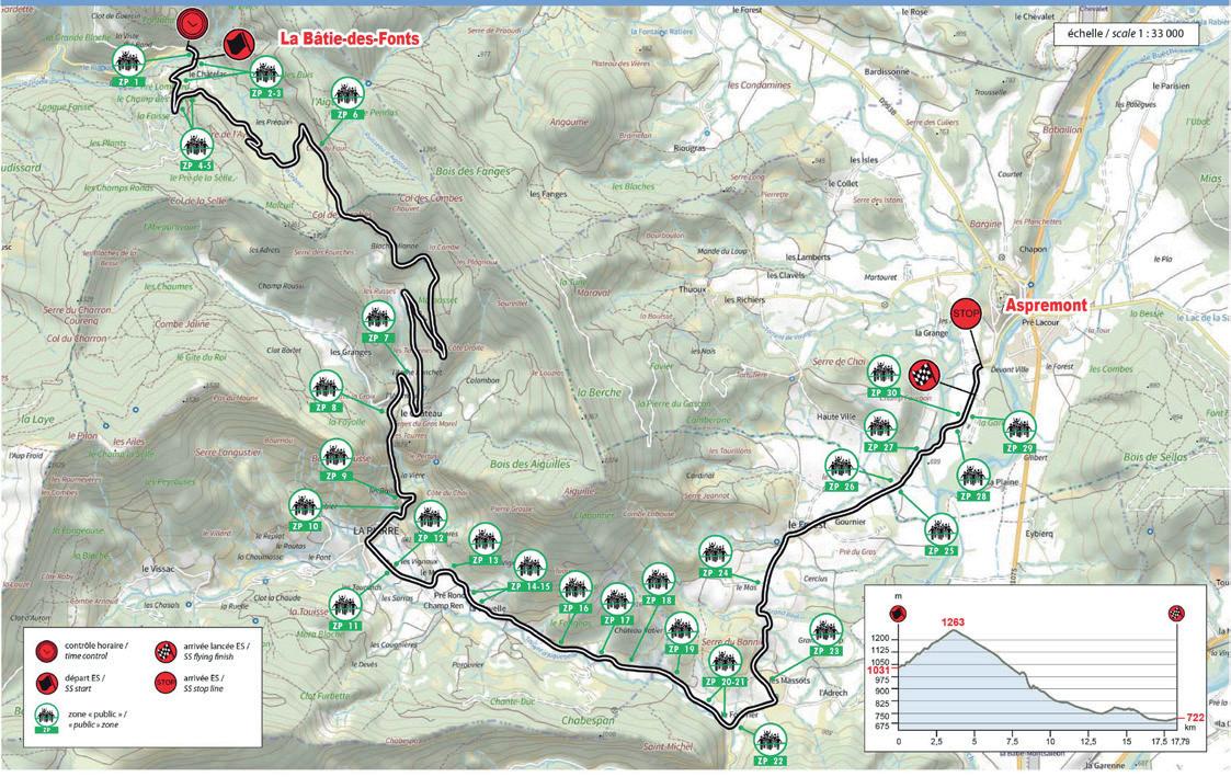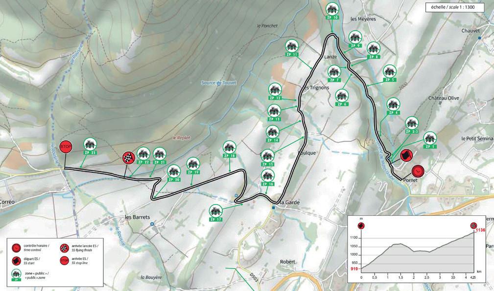 It has been 20 years since this event was last held, since the 74th edition of the Monte Carlo Rally in 2006. The start is uphill with a series of hairpins, followed by a very technical section on a poorly maintained road, mostly exposed on the northern slope towards the Cols de l'Ablé (1149m) and Col de l'Orme (1005m). The climb to La Cabanette is a series of 15 hairpins, letting no respite for the crews on a south-facing road until they reach the finish...