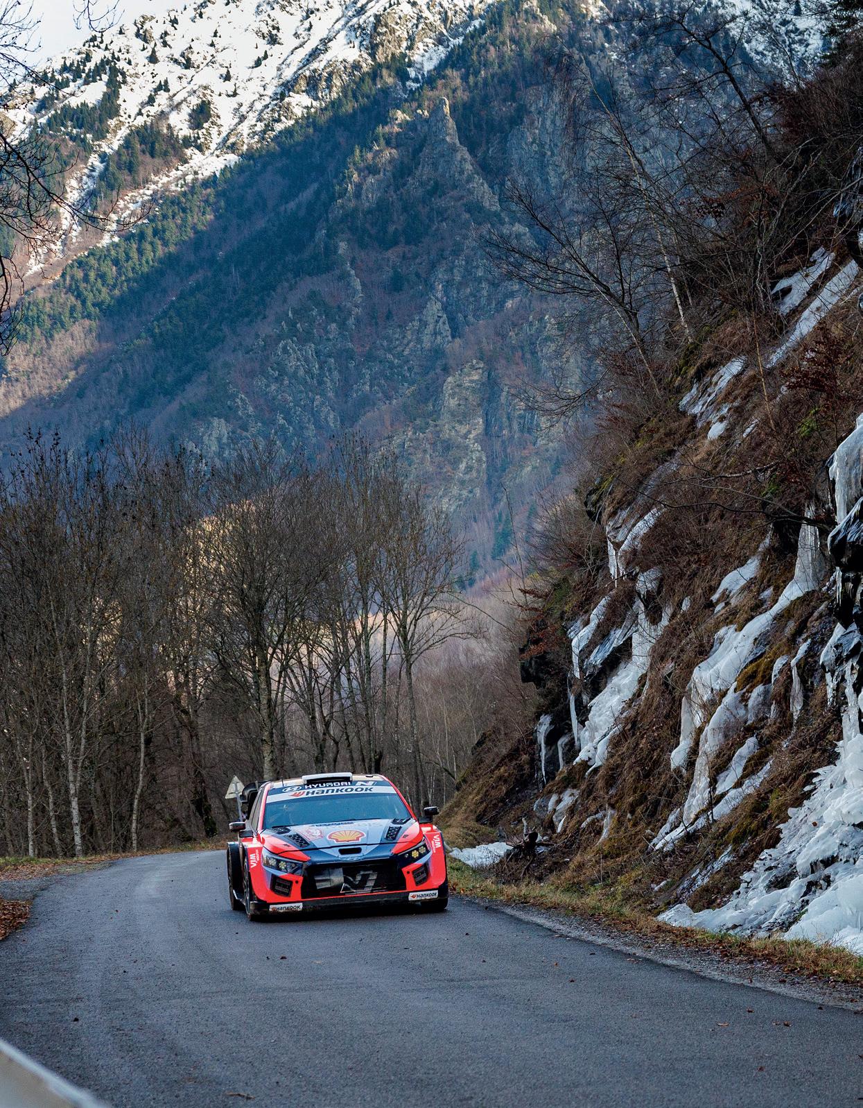 A monument from the 1960s, last borrowed at night, in 2022 during the 90th edition of the Monte Carlo Rally. Climbing from La Bollène-Vésubie towards Col de Turini (1,607m) offers no major issue thanks to the geographic orientation and the topography. It gets tougher when approaching the pass and in the first five kilometers of the downhill portion, and much more critical as it is exposed to the North, where snow and ice are an integral part of the scenery at this time of year. The rythm is then more constant towards Moulinet with a series of very fast road sections...