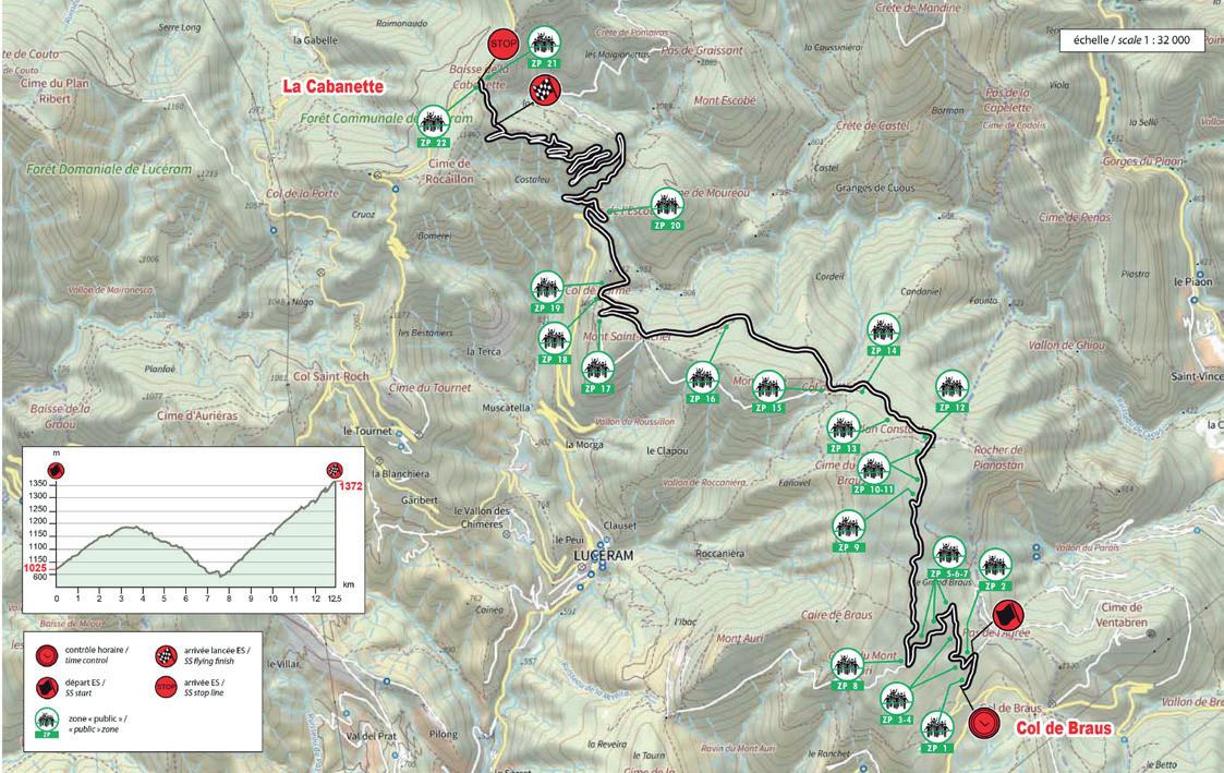 20 ans déjà que cette épreuve n’a pas été disputée, depuis en fait la 74e édition du Rallye Automobile MonteCarlo de 2006. Le départ s’effectue en montée avec une succession d’épingles, suivie d’une portion sur une route dégradée très technique, majoritairement exposée en versant Nord en direction des Cols de l’Ablé (1149m) et de l’Orme (1005m). L’ascension vers la Cabanette est un enchaînement de 15 épingles sans aucun répit pour les équipages jusqu’à l’arrivée sur une route exposée Sud…