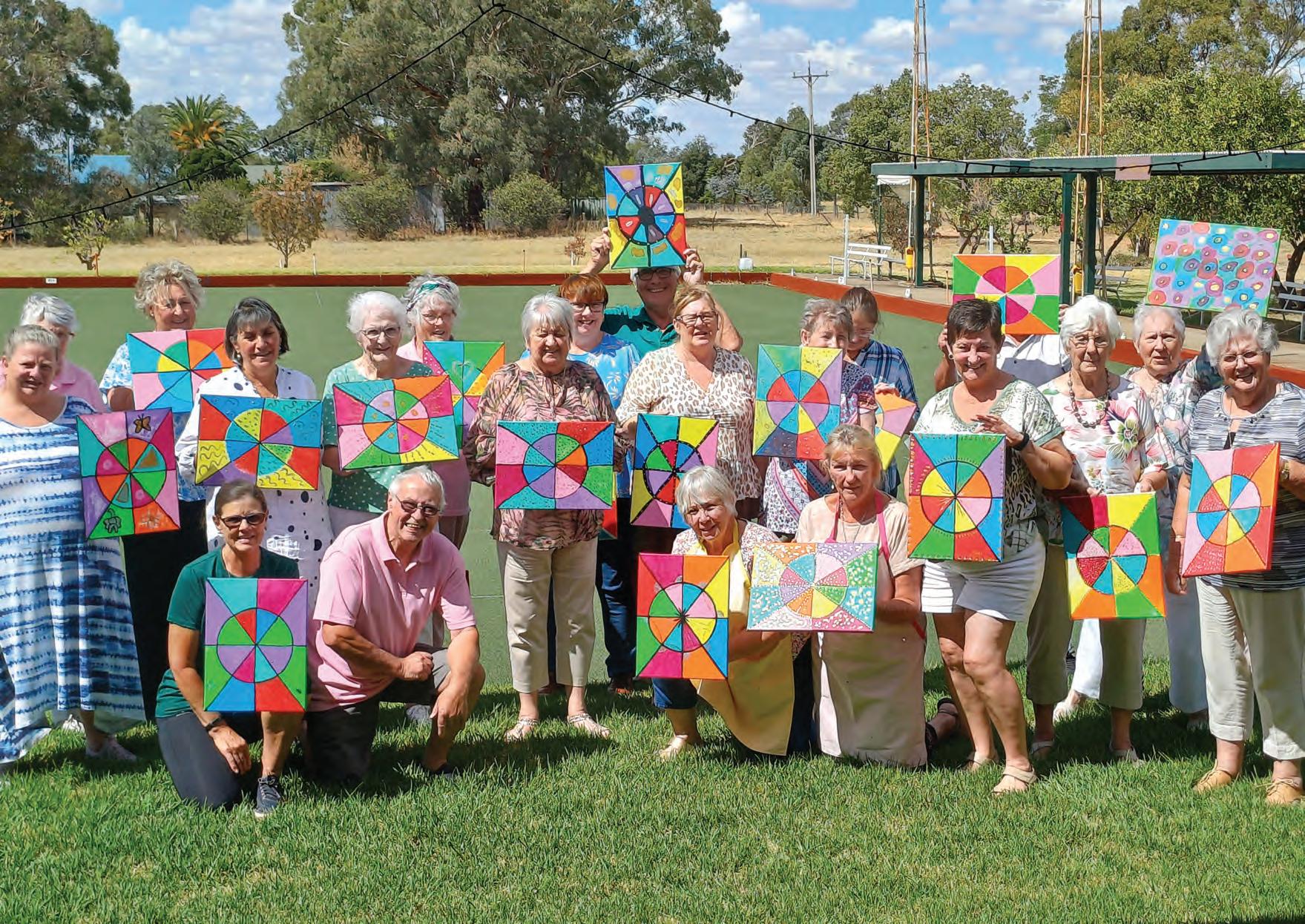 Left Rosemary Ferguson and right Anne Wescottparticipants of the 2023 Federation Fischer Community Leadership Program. Rosemary and Anne were the driving force behind the vibrant hay bale decoration initiative that focused on creating festive cheer around Corowa.