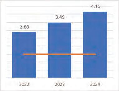 Council’s average investment funds during the financial year was $53.8 million, generating interest income of $2.6 million. This translates to a 4.78% Return on Investment (ROI). This is an additional 1.76% from the 3.02% ROI in FY 2022-2023. The numerous interest rate hikes during the 2023 calendar year have contributed to this improvement on ROI.