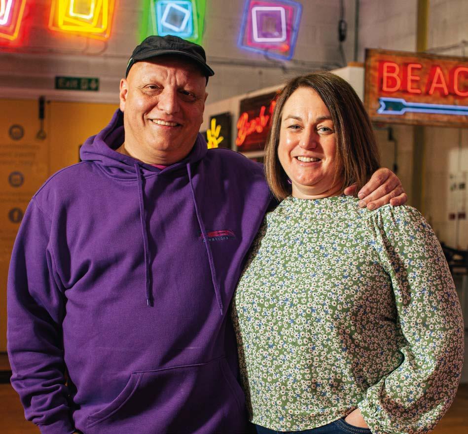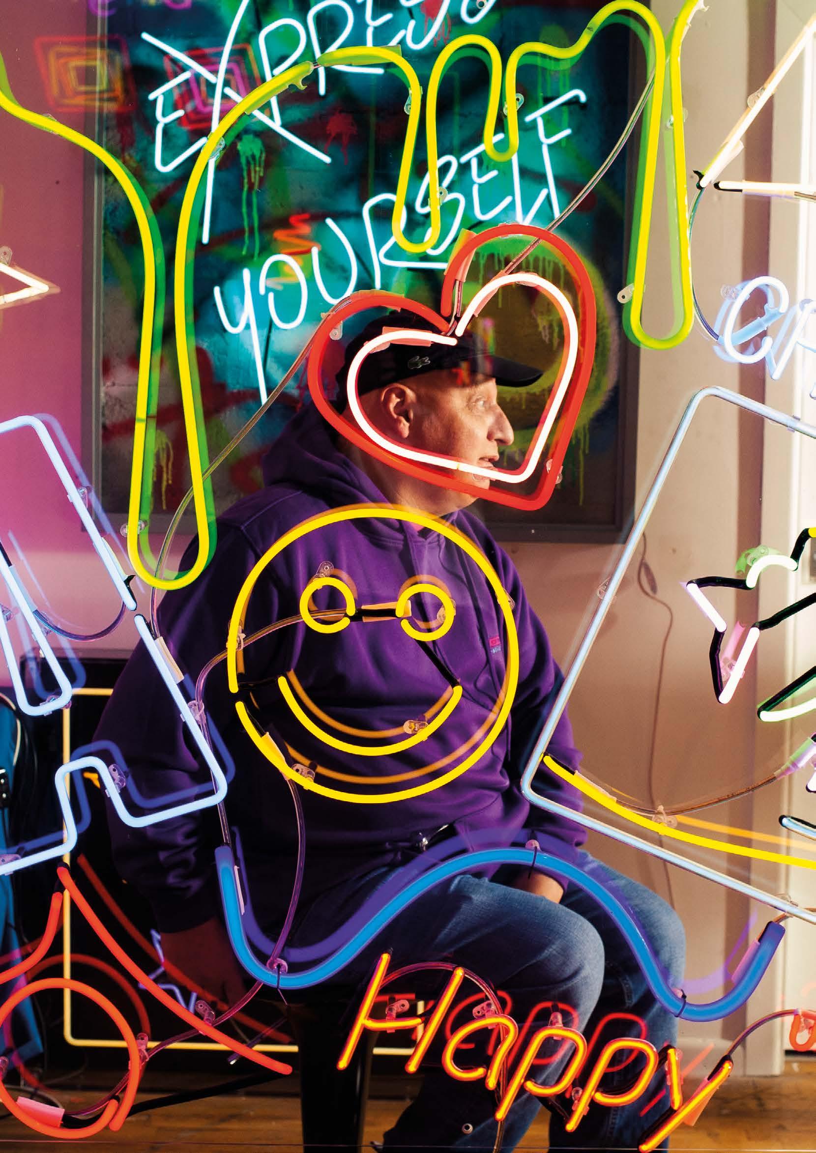Wife and husband Catherine and Tony Spink co-founded Neon Creations Ltd. in 2005. Based in Bolton, Lancashire, the business specialises in the design and manufacture of custom-made neon signs, neon lights and neon art. The business is secreted inside the imposing former Swan Lane Mill, built 1901 –1914 due to the expansion of the Lancashire cotton industry in the early 20th century. The brick façade now houses a labyrinth of storage spaces and warehouses. Stepping beyond the non-descript door of Neon Creations you enter a gloriously vivid enclave. It is like stepping into a giant pinball machine.