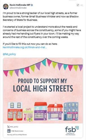 FSB set out an extensive, optimistic, futurefocused plan to ensure that high streets can evolve, thrive and remain at the heart of communities and local economies long into the future. Our digital advocacy for this sought to engage not only politicians, but members and other small business owners. Subsequently, both FSB’s sales team and FSB Insurance Service took the opportunity to create offers for small retailers, illustrating the complementary nature of FSB’s advocacy and membership benefits.