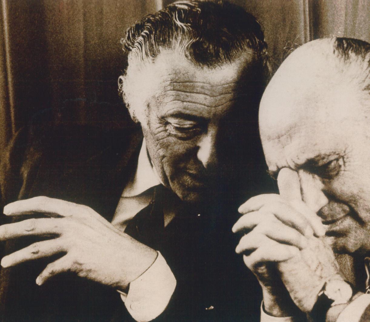 Gianni Agnelli, con il Presidente di ANIMA, Carletto Grondona, in un momento di raccogli- mento e di tensione