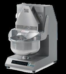Struttura in acciaio, verniciatura antigraffio e vasca con bordo rinforzato in acciaio AISI 304. Il coperchio della vasca è in PET trasparente con foro per aggiunta prodotto. Le braccia inox sono smontabili per la pulizia e la loro velocità va da 35 a 70 battute al minuto.