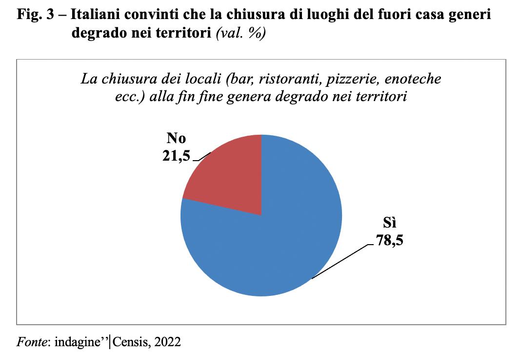 A preoccupare gli italiani sono invece i luoghi svuotati di vita, quelli che, anche a causa della chiusura degli esercizi pubblici, sono a rischio di essere abbandonati a sé stessi e di cadere nel degrado fisico e relazionale diventando preda facile di occupazione da parte della criminalità.