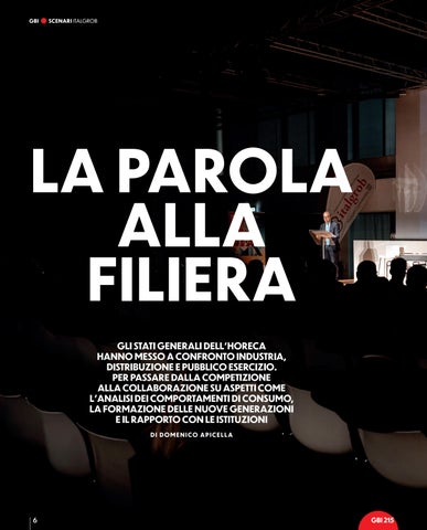 vuole tracciare la direttrice della logistica del futuro e da cui stanno nascendo nuove proposte operative e strategiche. Parlare di domani senza coinvolgere i giovani è, però, un atto di presunzione imperdonabile. Per questo si è chiesto ai ragazzi del Master AFDB-Luiss di sviluppare una ricerca specifica (si veda a pag. 74), che ha individuato non solo una serie di linee guida, ma anche le modalità con cui realizzare le strategie proposte. Crescere, nondimeno, implica anche l’assunzione di responsabilità diffuse ed è questo il lato terribile del divenire, il disagio del futuro. In questo senso Italgrob è consapevole che l’epifania della distribuzione Horeca porta con sé la necessità di rispondere delle proprie posizioni. E, d’altra parte, non c’è alternativa all’aprirsi al mondo se non si vuol essere a capo di un modello distributivo perento. Italgrob non deve sondare la tastiera in cerca di un suono che faccia innamorare, ma costruire un futuro solido per tutti i distributori Horeca.