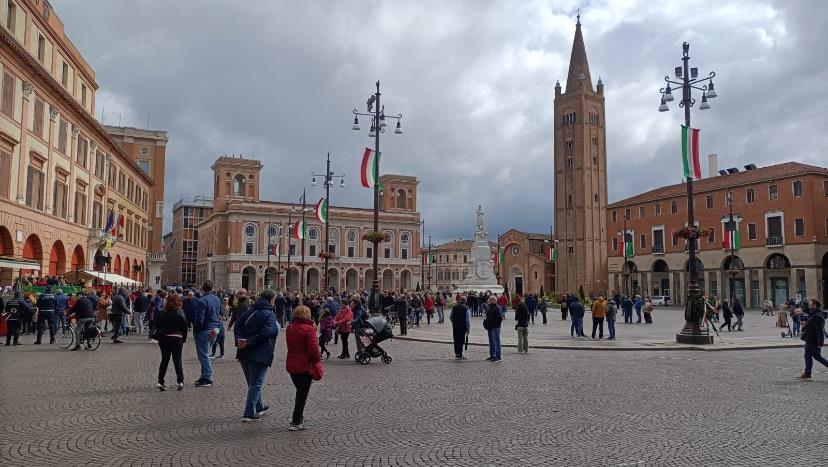 Il ritrovo è presso il parcheggio dell’Argine a Forlì. Arriviamo alla spicciolata, tutti pronti per la prima tappa. Per chi non la conosce, Forlì è considerata la città dell’ospitalità per la tradizione della colonna dei 12 anelli, ognuno corrispondente a una delle antiche famiglie deputate ad ospitare il forestiero che, arrivando, vi legava il cavallo.
