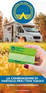 scontistiche che, a seconda della categoria merceologica vanno dal 7 al 30% (in alcuni casi anche il 50%), il costo della tessera annuale di affiliazione a Federcampeggio viene abbondantemente ripagata. Con un vantaggio in più non da poco: essere iscritti all’associazione e usufruire dei suoi servizi e delle sue tutele. Per sfruttare al meglio le convenzioni basta consultare (o scaricare) la guida delle attività convenzionate dal sito associativo (www.federcampeggio.it/agevolazioni-e-convenzioni/ ) e pianificare indimenticabili esperienze a bordo del proprio camper o della caravan. Confedercampeggio, tra l’altro, invia una newsletter settimanale a tutti gli associati promuovendo le convenzioni collegate al periodo stagionale. Un’avvertenza: qualora un associato dovesse incontrare problemi o resistenze presso attività convenzionate, lo segnali subito alla Federcampeggio (tel +39 055.882391 / e-mail: segreteria@federcampeggio.it).