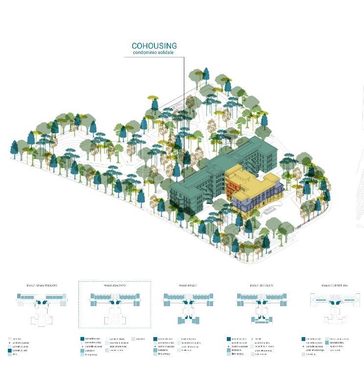 The Ex Galateo complex and its park are the arrival point of a series of important accessible spaces, centrality makers and urban attractors. Its functional reallocation represents today a remarkable occasion to heal a urban wound, located in Viale Rossini, between a bunch of high density residencial blocks and devoid of public spaces. The aim of the project is to answer to the growing and difficult dwelling distress that involves several situations of vulnerability and risk of wide clusters of population such us: young couples, young singles, University students, one-parent families, workers, elderly people, which a part from public benefits reserved to people with needs and to popular residency, are anyway not in the condition to have access to the free housing market and are exposed to the risk of worsen their dwelling condition.