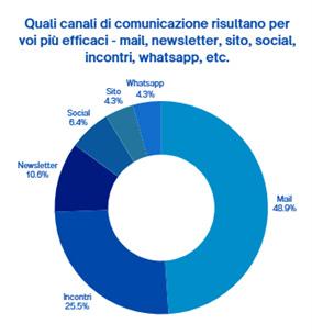 - La terza sezione del report , dedicata alla comunicazione, ha restituito un quadro ambivalente. Da un lato permane una preferenza marcata per strumenti “tradizionali” come le e-mail, ritenute ancora il mezzo più efficace per la comunicazio -