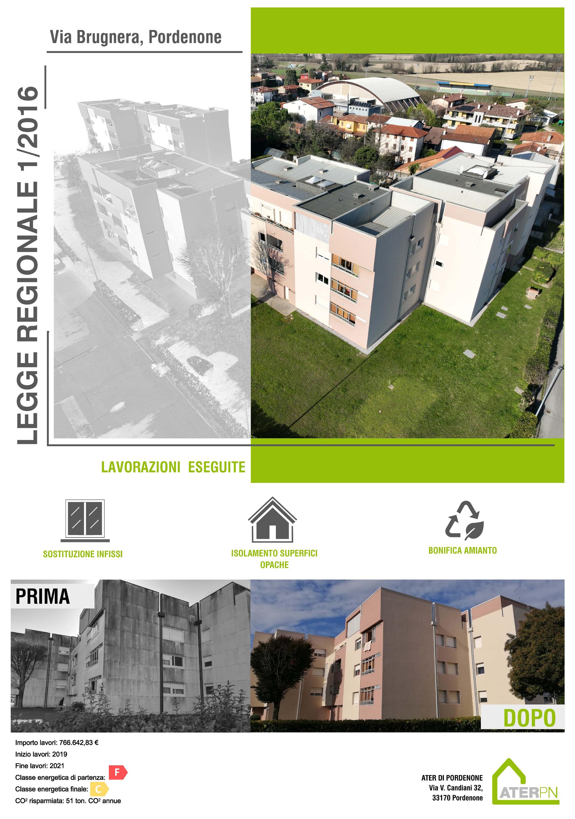 • Intervento PNC al PNRR a Pordenone, via Sabaudia 1-13 e via Aprilia 4-12: intervento di efficienta-mento energetico di un edificio di proprietà Ater da 52 alloggi per un importo di € 3.157.000.