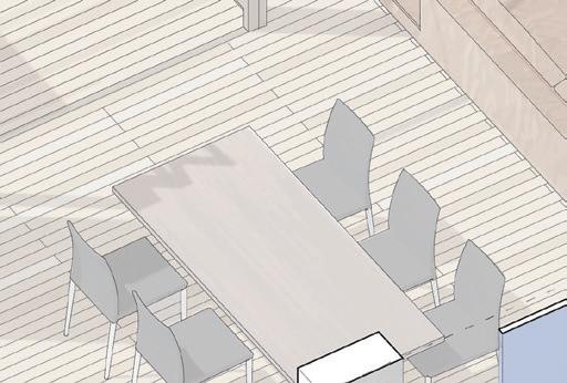 La vetrata pieghevelo e scorrevole permette al living di unirsi allo spazio giorno nella stagione estiva. La continuità degli spazi è rinforzata dalla continuità materica tra interno ed esterno.