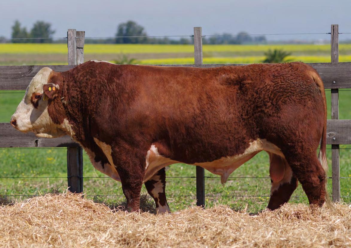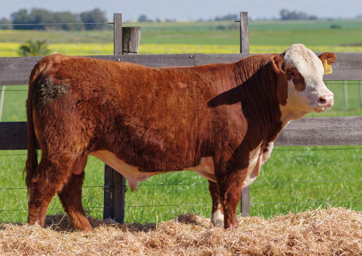El toro más carnudo de la oferta, con una importante estructura. Requemado, largo, y con una trasera envidiable. Ideal para producir vacas y novillos pesados, con datos objetivos increíbles como se observa en sus INDICES de cría o de ciclo completo. Herramienta para conocedores con los ojos puestos en la rentabilidad.