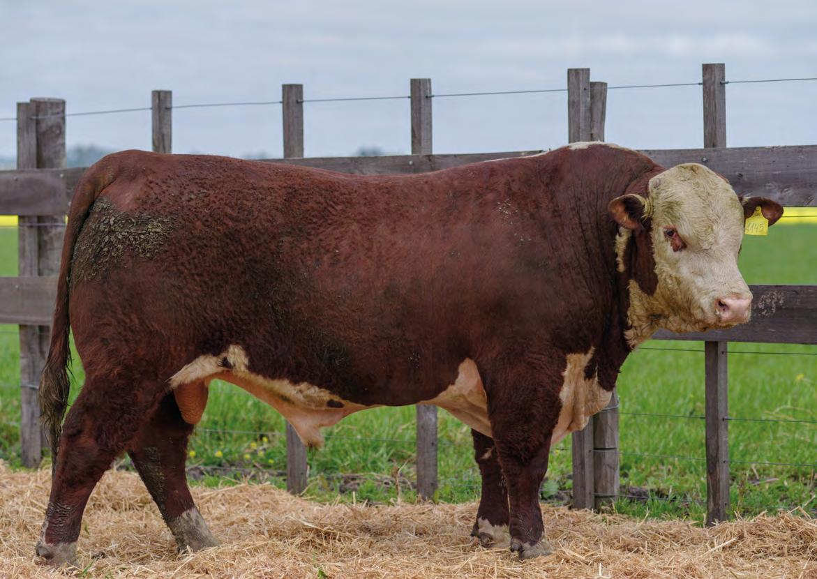 Espectacular combinación de capacidad carnicera, habilidad materna y consistencia en el pedigree. Hijo de El Padre con la inmortal Bruja 9012, que fuese Reservada Gran Campeona en Expo Prado 2014 y madre de Brujo, Gran Campeón en Expo Prado 2015 de ternero. Sus datos objetivos muestran su facilidad de parto directa y maternal. Además, soberbios datos de carcasa, en el 5% superior tanto para AOB como para Grasa. Un físico moderado pero que carga muchísima carne, y una habilidad inigualable para engrasarse. Utilizado por primera vez en el 2021 para repasar vaquillonas, sus hijas son petizas, anchas y de buenas ubres. Este 2024 va para su cuarto entore en Las Anitas. Un padre para agregar carne y consistencia.