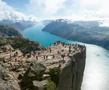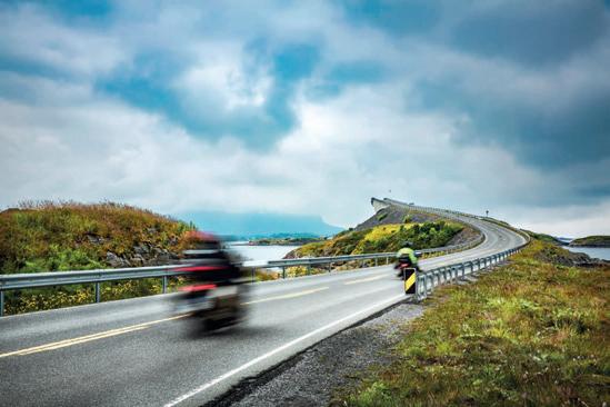 bar: Wenn jeder Tourist für ein Foto im Tunnel anhält, steigt die Unfallgefahr. In 55 Meter über dem Fjord verläuft unsere Route auf der Brücke. Grobe Faustregel: Der Fjord ist etwa so tief, wie die Berge an seinen Ufern hoch sind. Das sind an dieser Stelle 500 Meter Wassertiefe. Deshalb musste eine Hängebrücke gebaut werden, die eine Spannweite von 1.380 Metern hat. Viel zu schnell sind wir auf dem anderen Ufer angekommen. Und damit beginnt der alltägliche Wahnsinn auf der Touristenstraße 13. Bis heute ist die einzige Verbindung auf dem östlichen Ufer des Sørfjords in Teilen nur ein- oder anderthalbspurig ausgebaut. Busse, LKW oder Wohnmobile kommen an vielen Stellen nicht aneinander vorbei, ohne zu rangieren.
