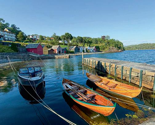 ie Fähre hat im Hafen von Bergen festgemacht. Es ist früher Nachmittag, der Verkehr läuft halbwegs durch die zweitgrößte Stadt Norwegens. Und das soll der Ort mit der größten Niederschlagsmenge sein? Die Stadt, in der es angeblich immer regnet? Das Einzige, was hier tropft, ist mein Schweiß. Ich freue mich auf die Stadtautobahn und den ersten Tunnel, weil sie Luftzug und etwas Kühle versprechen. Wir haben zwei Ziele in Bergen, die wir anlaufen müssen. Pflichtbesuche, hat meine liebste Mitfahrerin gesagt. Es geht um Wollwaren: Oleana ist ein kleiner norwegischer Hersteller von Strickwaren für Frauen, der seine traditionsreiche Produktionsstätte direkt am Fjordufer in Indre Arna hat. Dort gibt es einen Fabrikverkauf. Wir sind nahezu die einzigen Besucher. Nach einigen Versuchen als Stilberater ziehe ich mich auf den Männer-Parkplatz zurück: ein Stuhl an der offenen Tür, die direkt hinaus auf den alten Holzkai führt. Blauer Himmel, ein laues Lüftchen, wunderbarer Fjordblick – so lässt es sich aushalten.