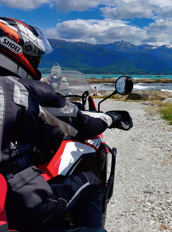 Unser erfahrener Guide fährt auf dem Motorrad vorneweg und zeigt Euch die Schönheiten Neuseelands zwischen Auckland und Christchurch.