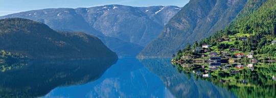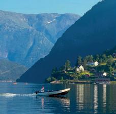 Sobald wir auf die kleinen, alten Straßen abbiegen, haben wir selbst in der Hauptsaison die Strecke fast für uns allein (links). Ulvik liegt an einem Arm des Hardangerfjords und ist von Bergen und Wiesen mit Apfelbäumen umgeben (rechts)