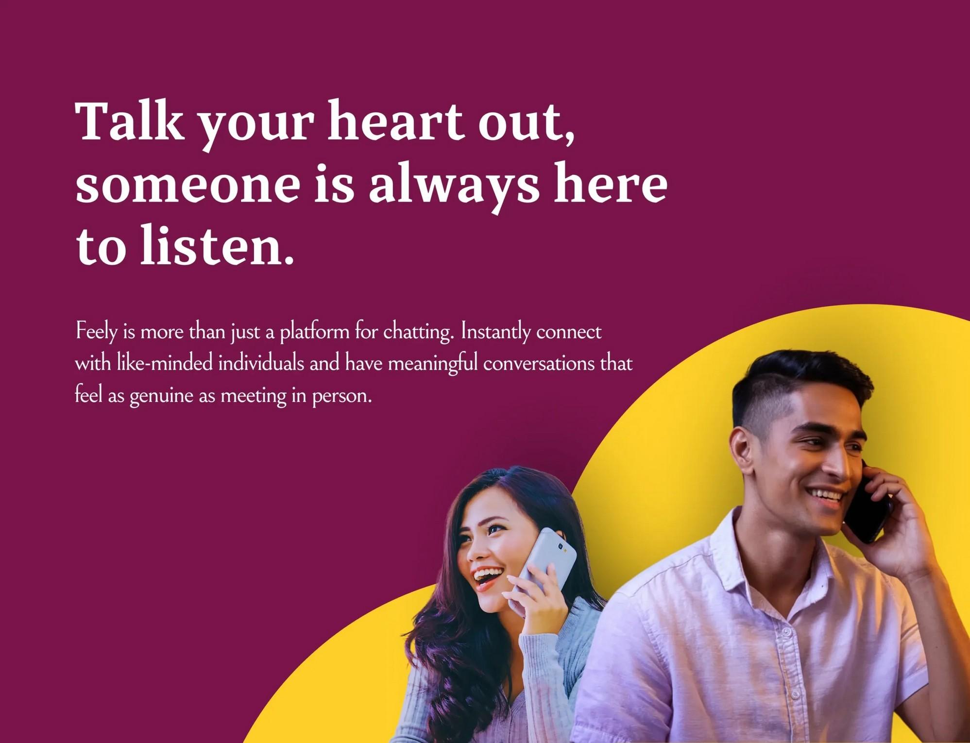 Feely Talk is a platform that provides anonymous and confidential conversations with listeners. We offer a safe and supportive space for you to share your thoughts and feelings without judgment.