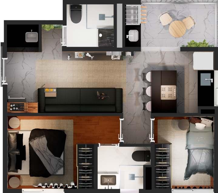 IMAGEM MERAMENTE ILUSTRATIVA UmEmpreendimentomarcadopeloconfortoebomgosto IMAGEM MERAMENTE ILUSTRATIVA 45,88M² UNID ADE