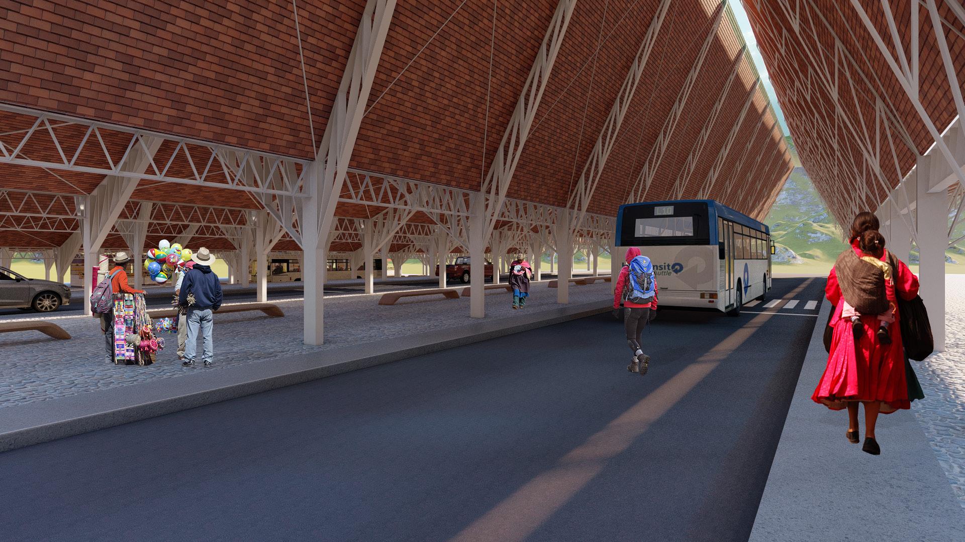 post graduation site: Santa Teresa, Peru year: 2022 partners: André Haidar and Nicole Reginato a very old text or document in which writing has been removed and covered or replaced by new writing. sports court - moving the habitants of águas calientes from risk areas for a new site with infrastructure and recreation. bleachers with a roof awning for water caption. bus station - the most used local transportation and the only way to take tourists at machu picchu, excepting the trekking adventurers santa teresa market hall - shelter for the handicraft and food market, supported by the high flow of tourists that arrives daily in the city. train station - the mainly connection between the city of santa teresa and the whole sacred valley, coming from ollantaytambo and passing through águas calientes. sun-erda