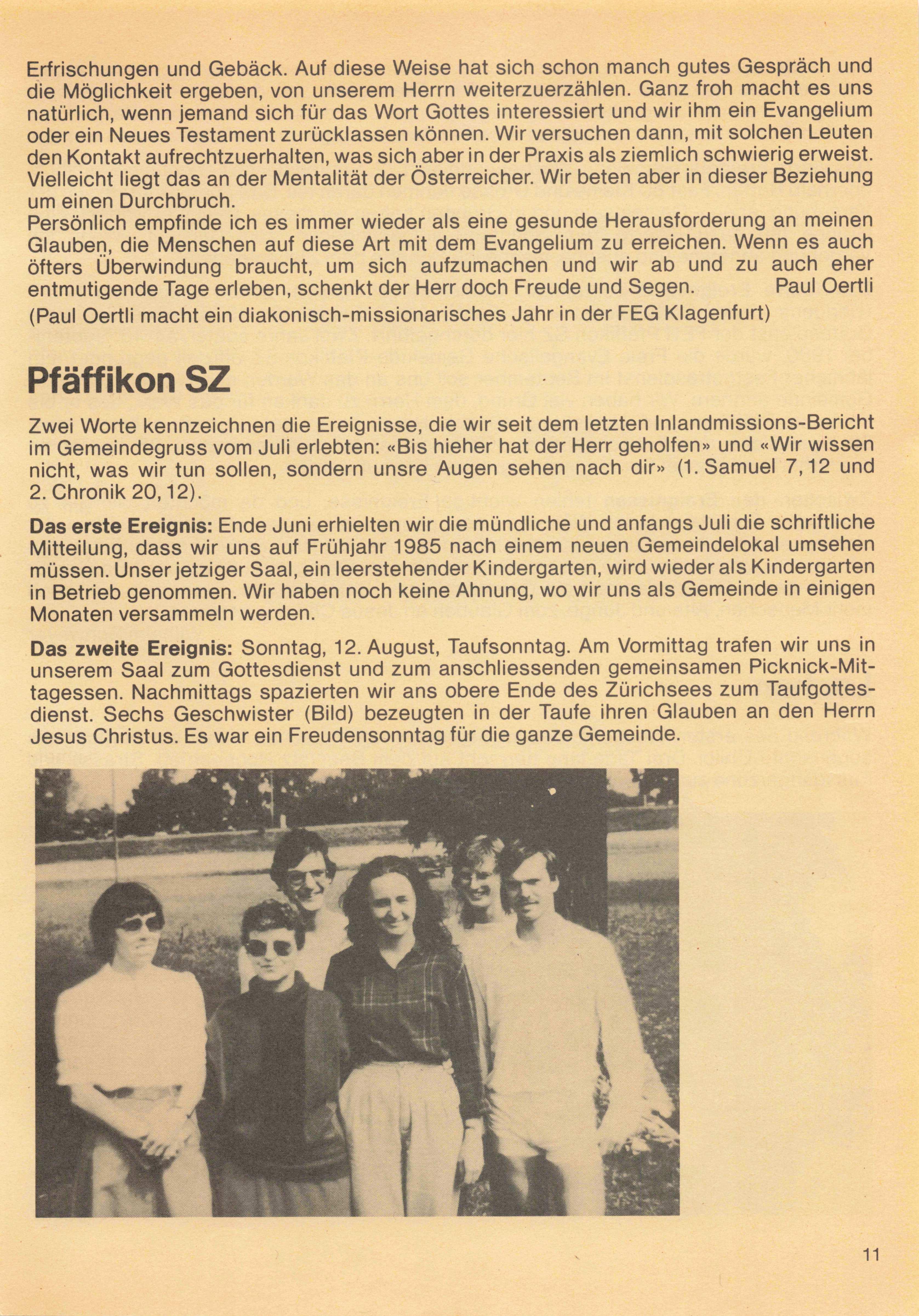 Sonntag, 18. November 1984 in der Freien Evang. Gemeinde Basel, Mittlere Strasse 13